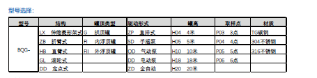 型號(hào)BQG-LX-FI-SD-H20-P03-316代表用于20米內(nèi)浮頂罐的菱形架,手搖式罐下采樣器,316不銹鋼材質(zhì),取樣點(diǎn)3個(gè)