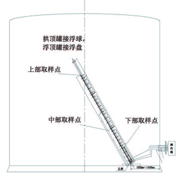 每個(gè)采樣點(diǎn)的取樣管路都是相互獨(dú)立的,取樣管路連接至罐外密閉取樣箱。占用較少儲(chǔ)罐內(nèi)部空間,安裝方便,取樣點(diǎn)誤差較小??稍谏炜s架頂部安裝浮球/浮盤(pán),伸縮架占地面積小,適應(yīng)國(guó)內(nèi)大多數(shù)儲(chǔ)罐使用
